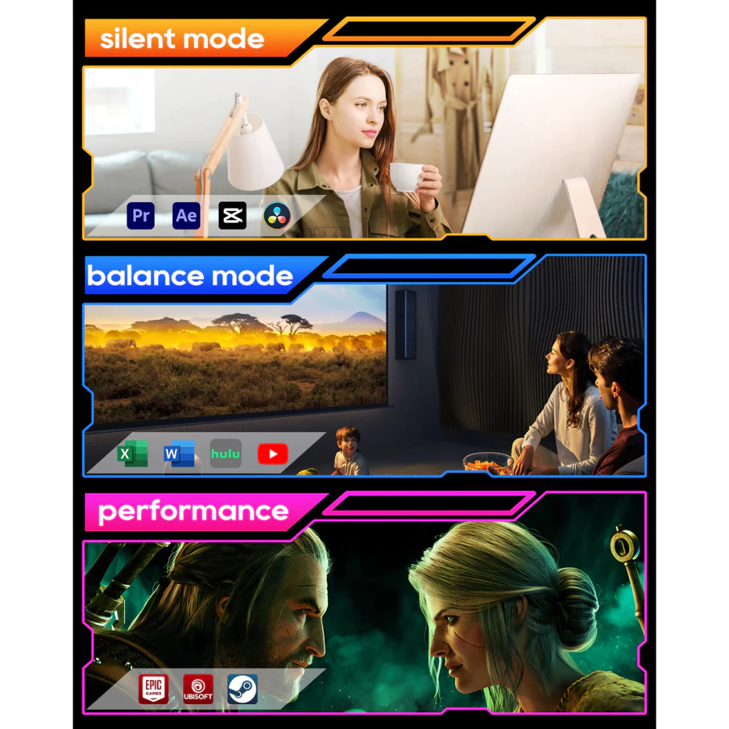 Silent (45–54W), Balance (54–65W), Performance (65–75W)